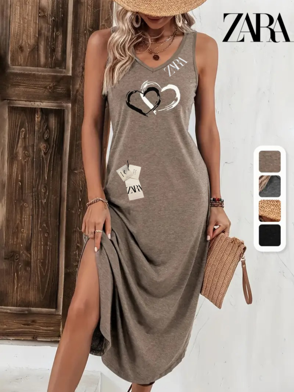 This sleeveless Zara – New Casual Dress offers a relaxed yet stylish silhouette perfect for warm-weather days. The lightweight fabric and flowing cut make it ideal for strolls on the beach or casual city outings. Its V-neckline and sleeveless design add a breathable, easygoing charm that suits every body shape with grace.