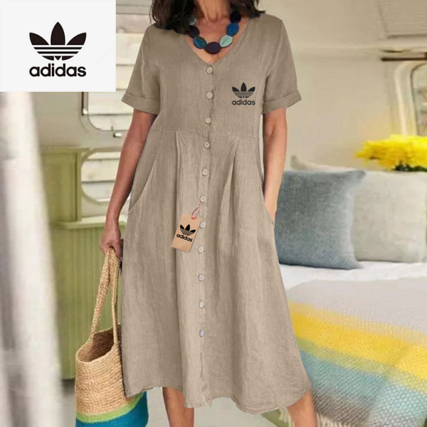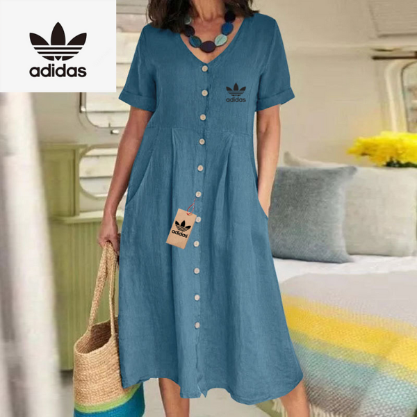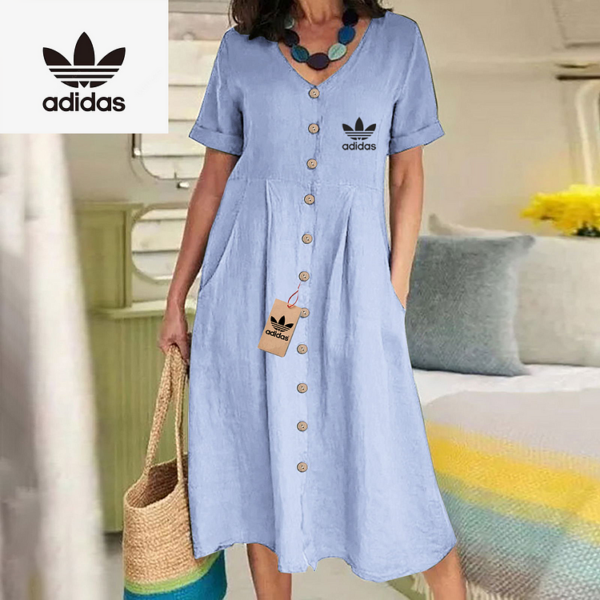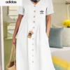 The Adidas – New Women’s Dress combines modern elegance with casual charm. Its flowing silhouette and button-down front make it ideal for day to day wear while maintaining a flattering, relaxed shape. Designed with simplicity in mind, this dress delivers timeless style for any setting.