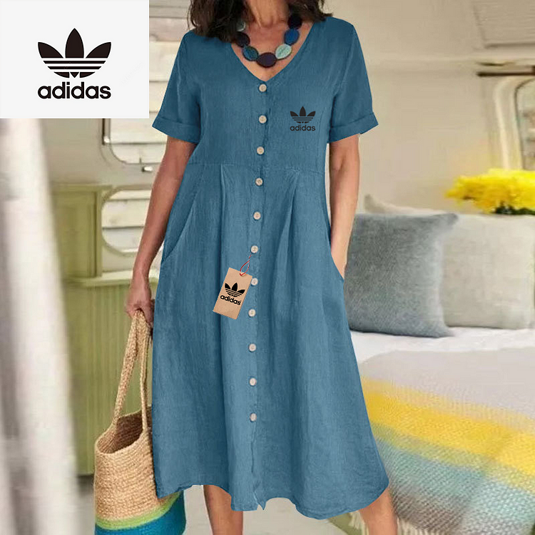 The Adidas – New Women’s Dress combines modern elegance with casual charm. Its flowing silhouette and button-down front make it ideal for day to day wear while maintaining a flattering, relaxed shape. Designed with simplicity in mind, this dress delivers timeless style for any setting.