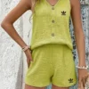 Crafted from organic polyester, this set provides a breathable, lightweight feel that keeps you cool and comfortable all day long. The fabric’s soft texture glides over the skin, while its moisture-wicking properties ensure freshness under the sun. Whether you’re on the go or taking it slow, this set moves effortlessly with your body.